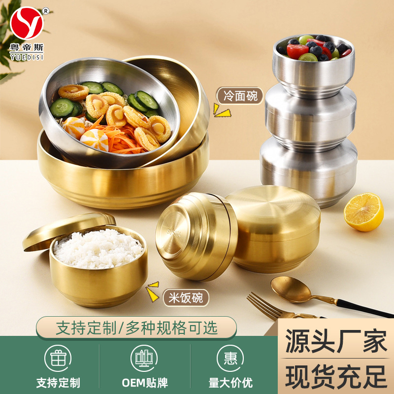 メーカーは厚いステンレスの冷麺碗を提供しています。韓国式レストランのキムチ碗とご飯の家庭用蓋付きスープの卸売りです。