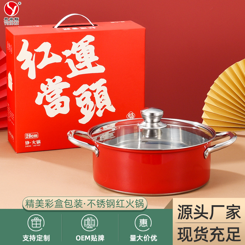 メーカー直供龍年開年贈答品赤湯鍋鍋専用鍋増厚双柄ステンレス湯鍋代発