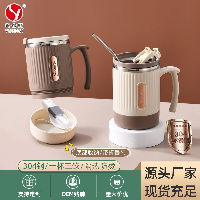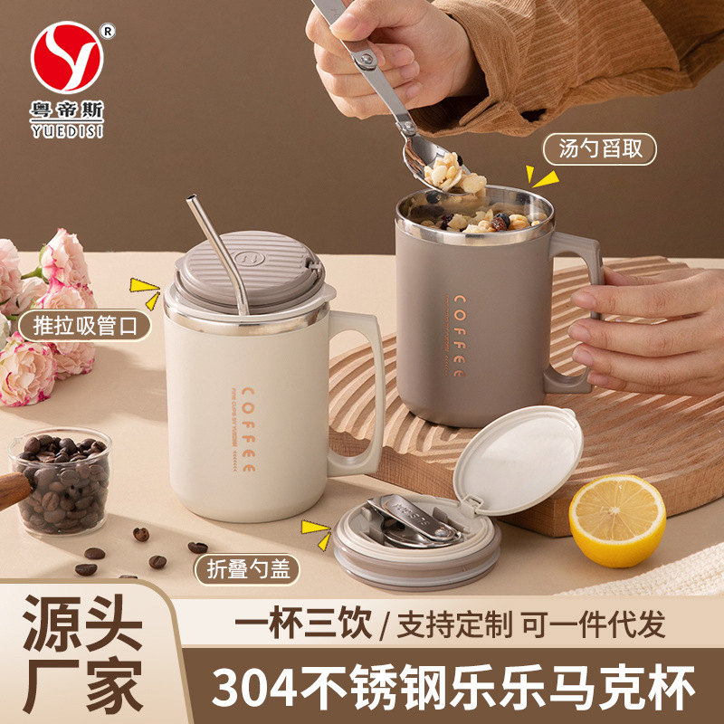 メーカー直供マグカップinsタイプ断熱カップコーヒーカップ折り畳みスプーン付き事務カップ代発