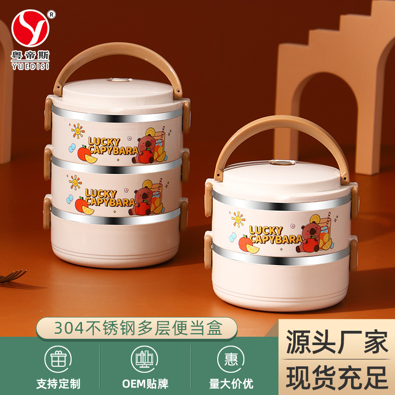メーカー直供304ステンレス多層弁当箱小皮バラ円形弁当箱出勤携帯弁当箱代発