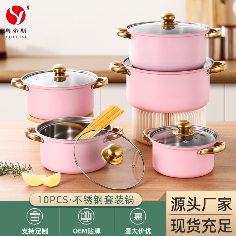 工場直接供給ステンレス鋼カラーポットセット 10 ピースチューブハンドルスープポットキッチン両耳セットポット卸売