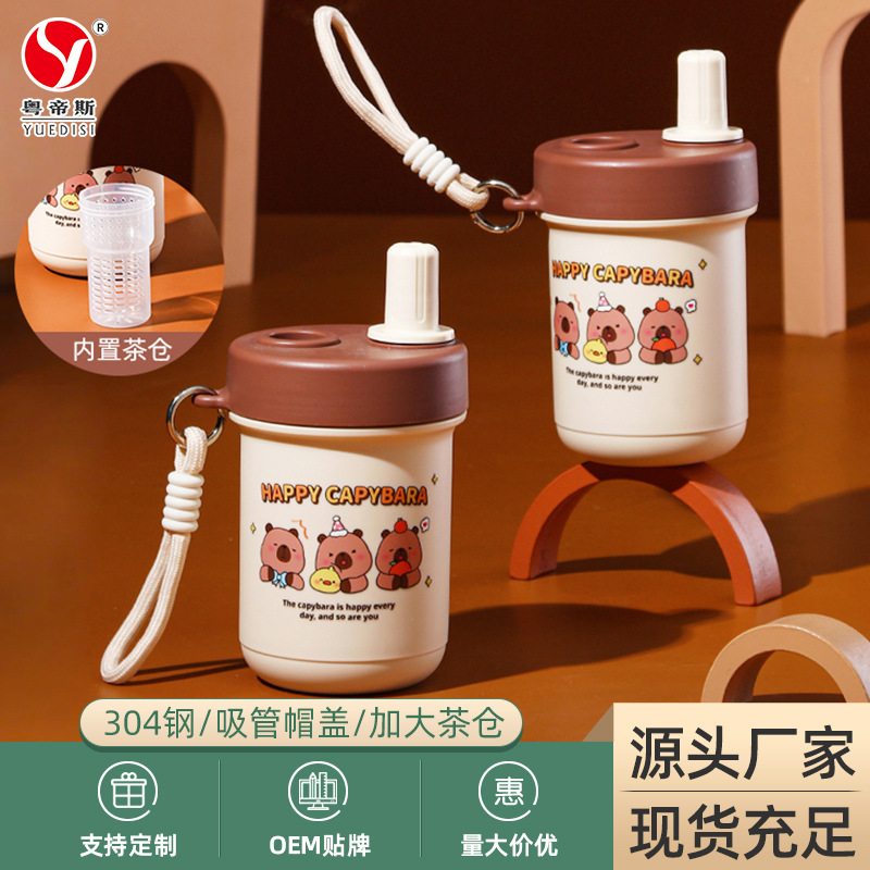 メーカー直供小皮巴拉茶水分離カップ304ステンレスコーヒーカップ高颜値携帯カップ代発