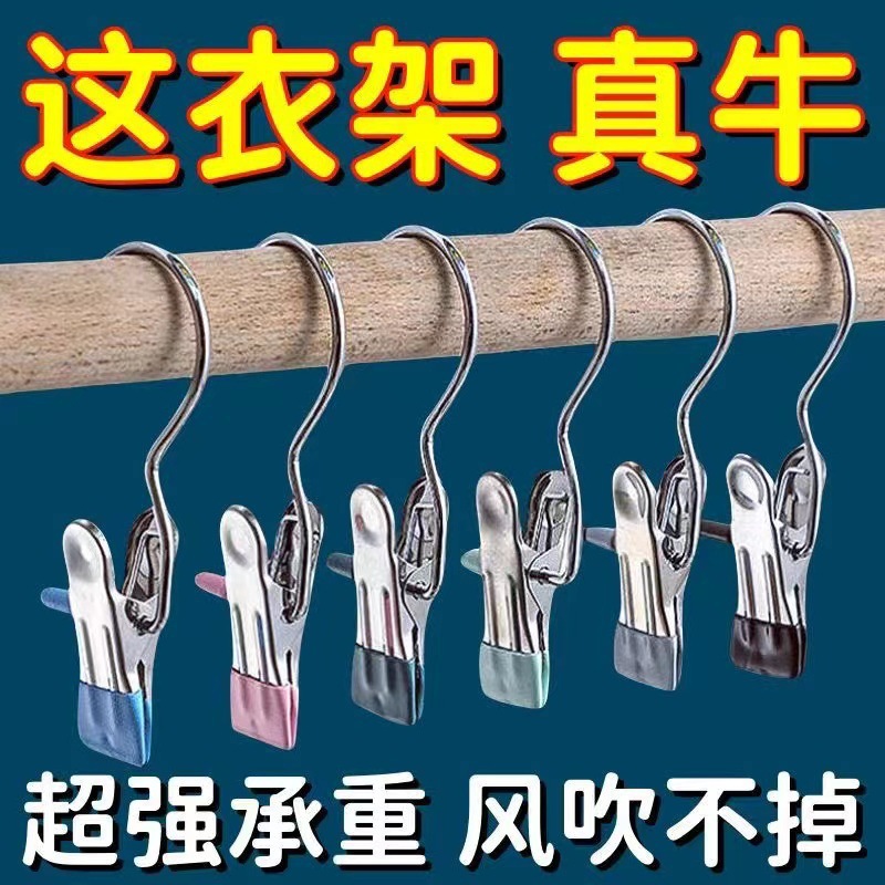 ステンレス鋼フッククリップ多機能衣類クリップシームレスタオル帽子靴下防風ズボンクリップフック収納クリップ