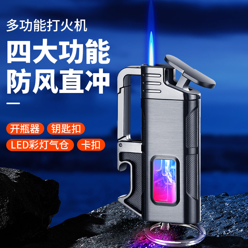黒科学技術夜光透明ガス倉ライター直沖青炎防風金属キーホルダー男性ファッションプレゼント