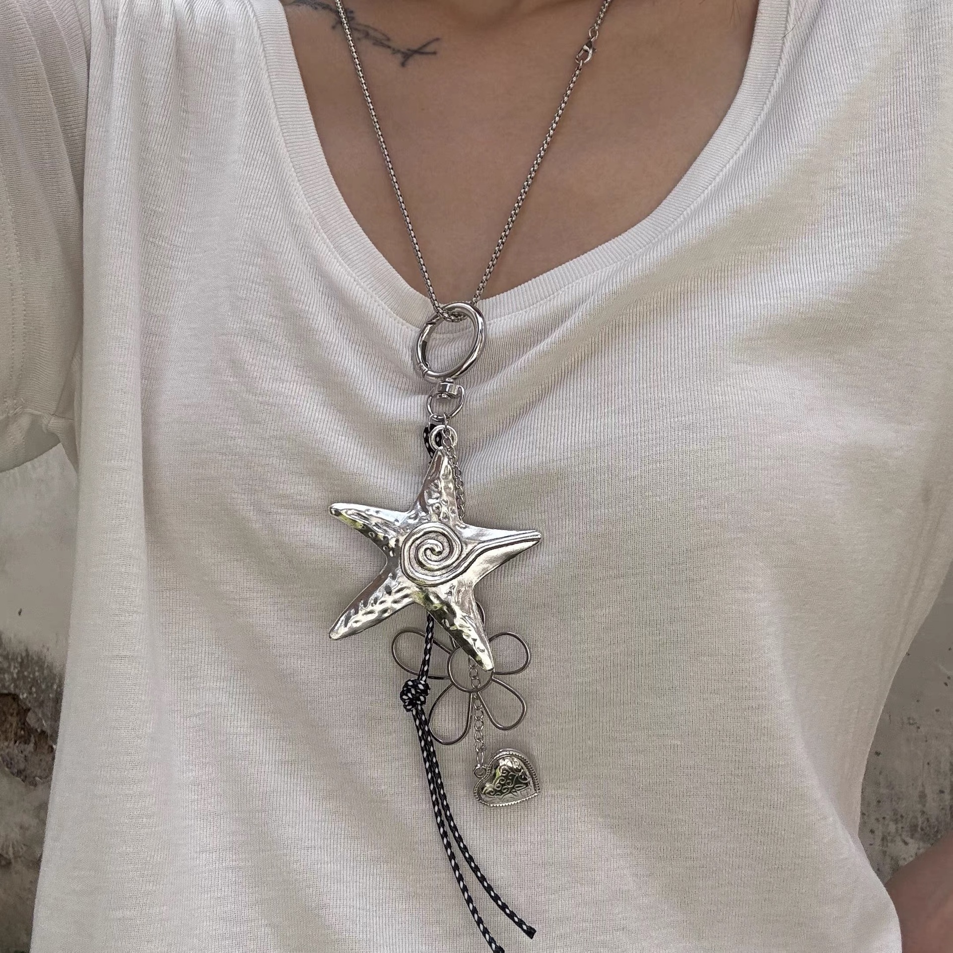 韓国の甘くてクールなコールドスタイルシルバースターヒトデフラワーペンダントネックレスニッチサブカルチャー多用途ロングチェーン