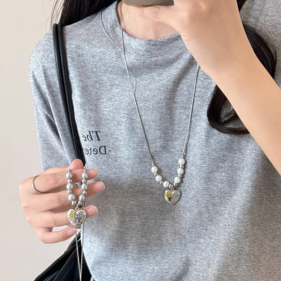甘くてクールなホットガールラブパールネックレス女性のためのインスタイルライト高級ニッチデザインヒップホップネックレス鎖骨チェーンアクセサリー