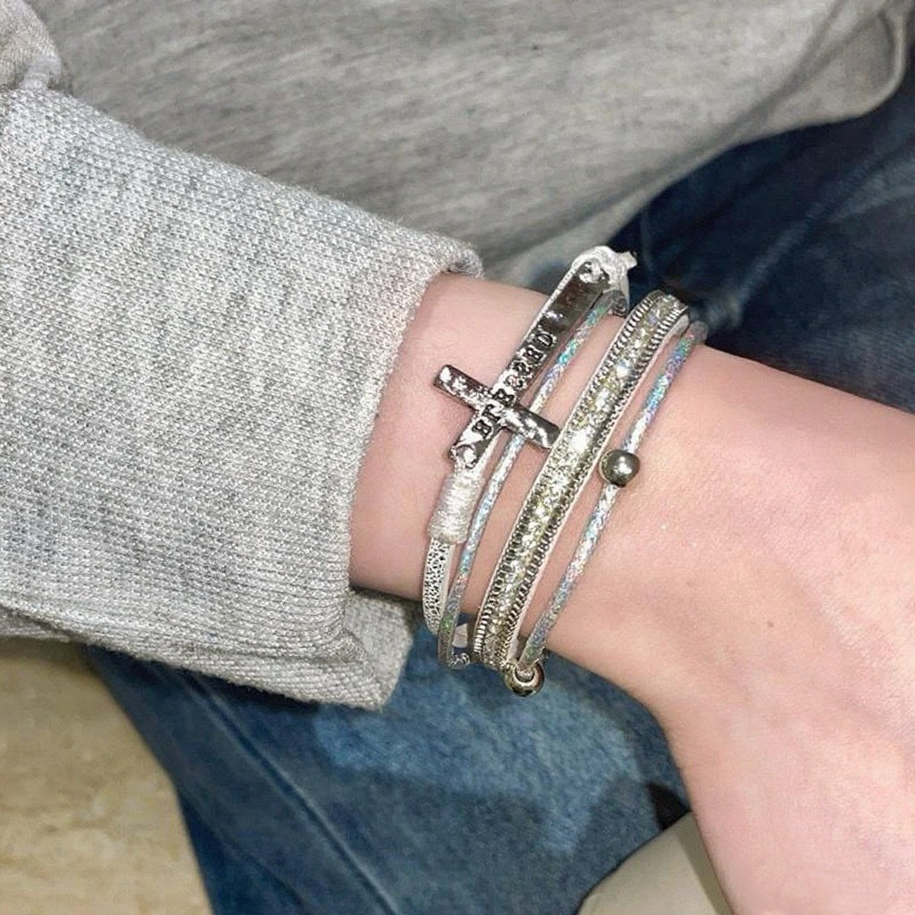 女性用のリボン、水滴、花の積み重ねブレスレット、シンプルなインコールドスタイルのハンドジュエリー、ニッチなデザイン、多用途のアクセサリー