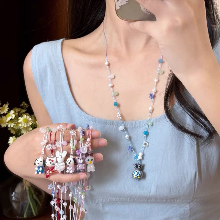 ドーパミンカラー漫画小動物編組ロープビーズネックレス女性のかわいいロングホルターネックセーターチェーンアクセサリー