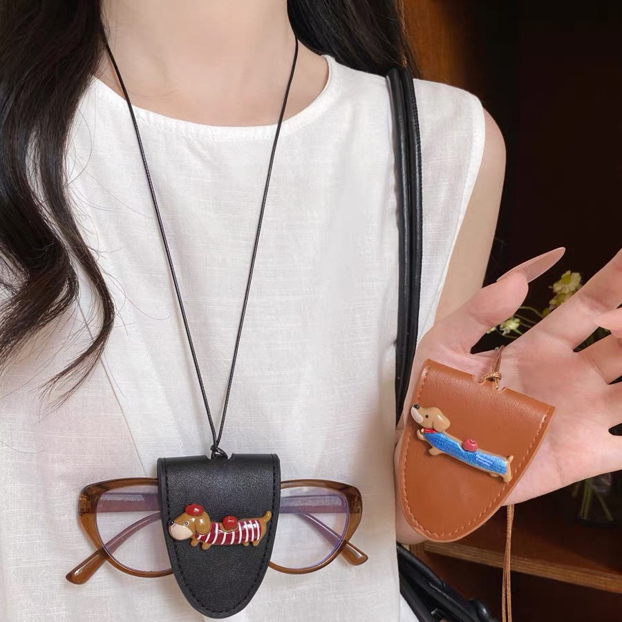 カラフルで楽しいダックスフントメガネクリップペンダントネックレスレディースロングポータブル落下防止メガネ収納ホルターアクセサリー
