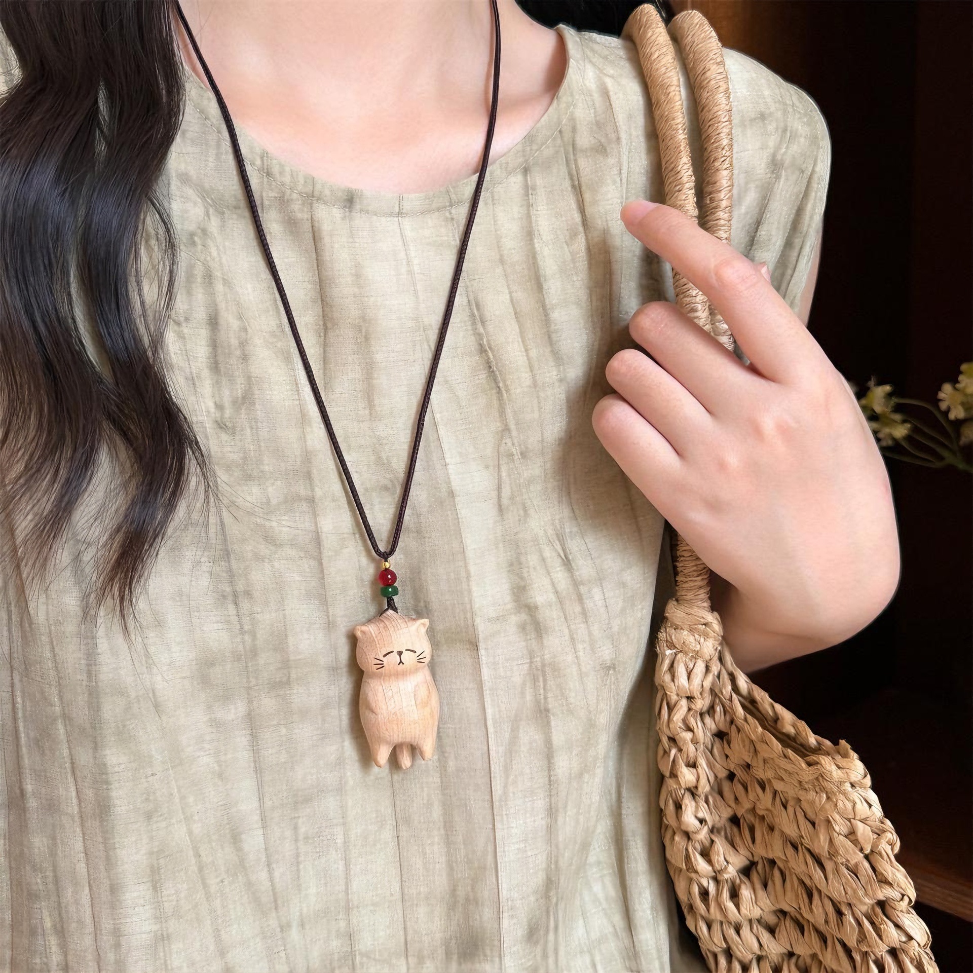 2025 新天然無垢材彫刻かわいい猫文具ネックレス鎖骨チェーン手作り diy 縁起の良い幸運のジュエリー