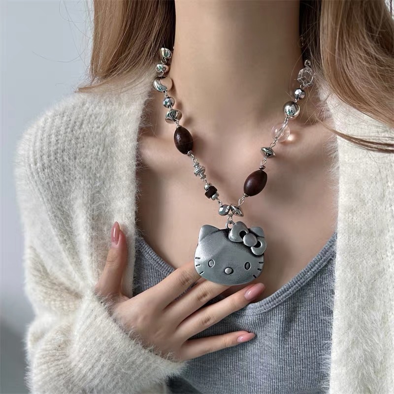 甘くてクールな y2k ホットガールスタイルメタルキティ猫ビーズペンダントネックレス女性のニッチパーソナライズされた鎖骨チェーンネックレスアクセサリー