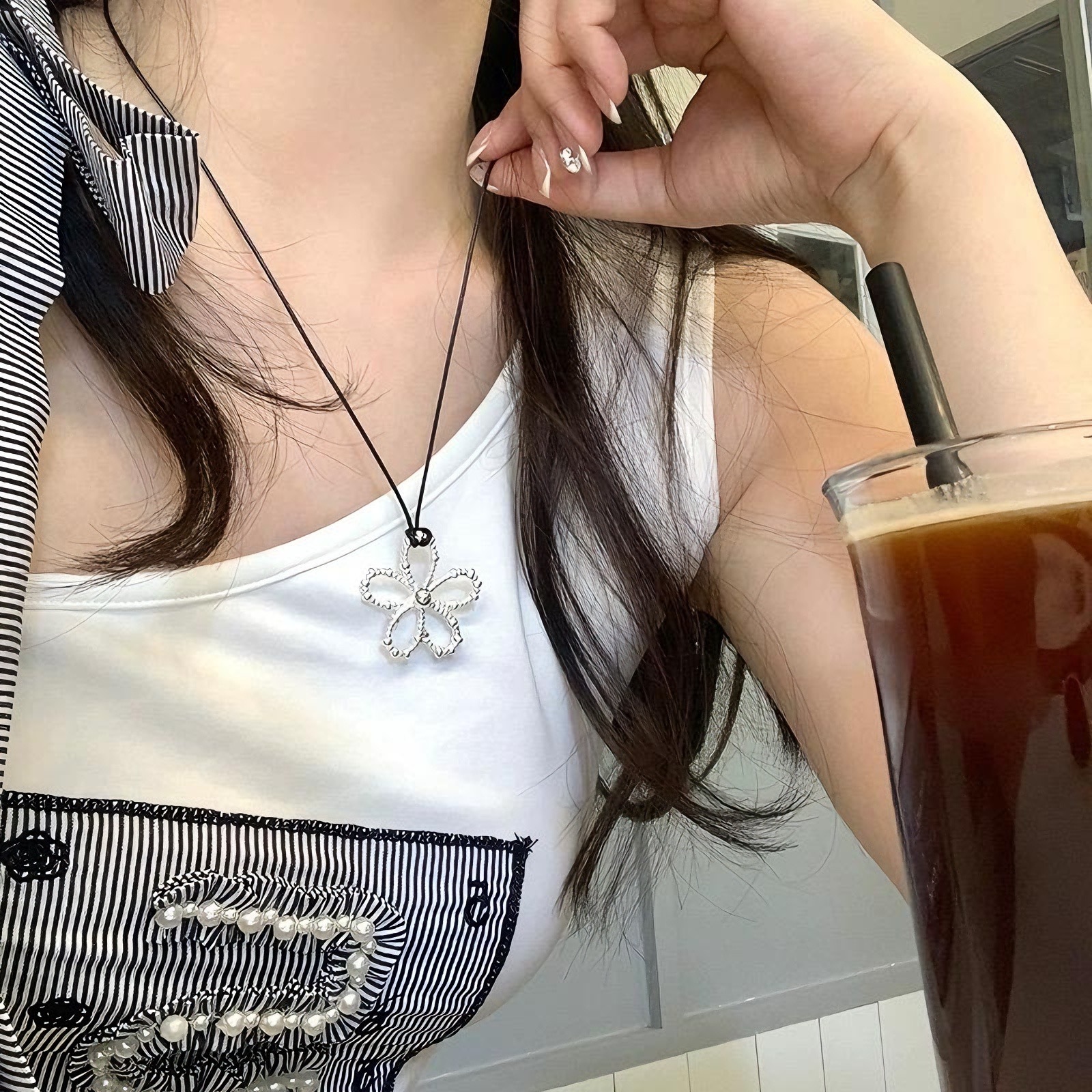 韓国インスタイル中空花黒ローププルネックレスレディースハイエンドニッチライト高級鎖骨チェーンアクセサリー甘くてクール