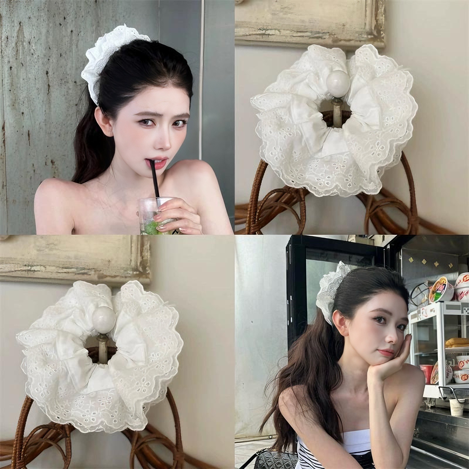4層レースフレンチヘアゴム女性用Lサイズ白中空ロリータヘアロープボールヘアアクセサリー