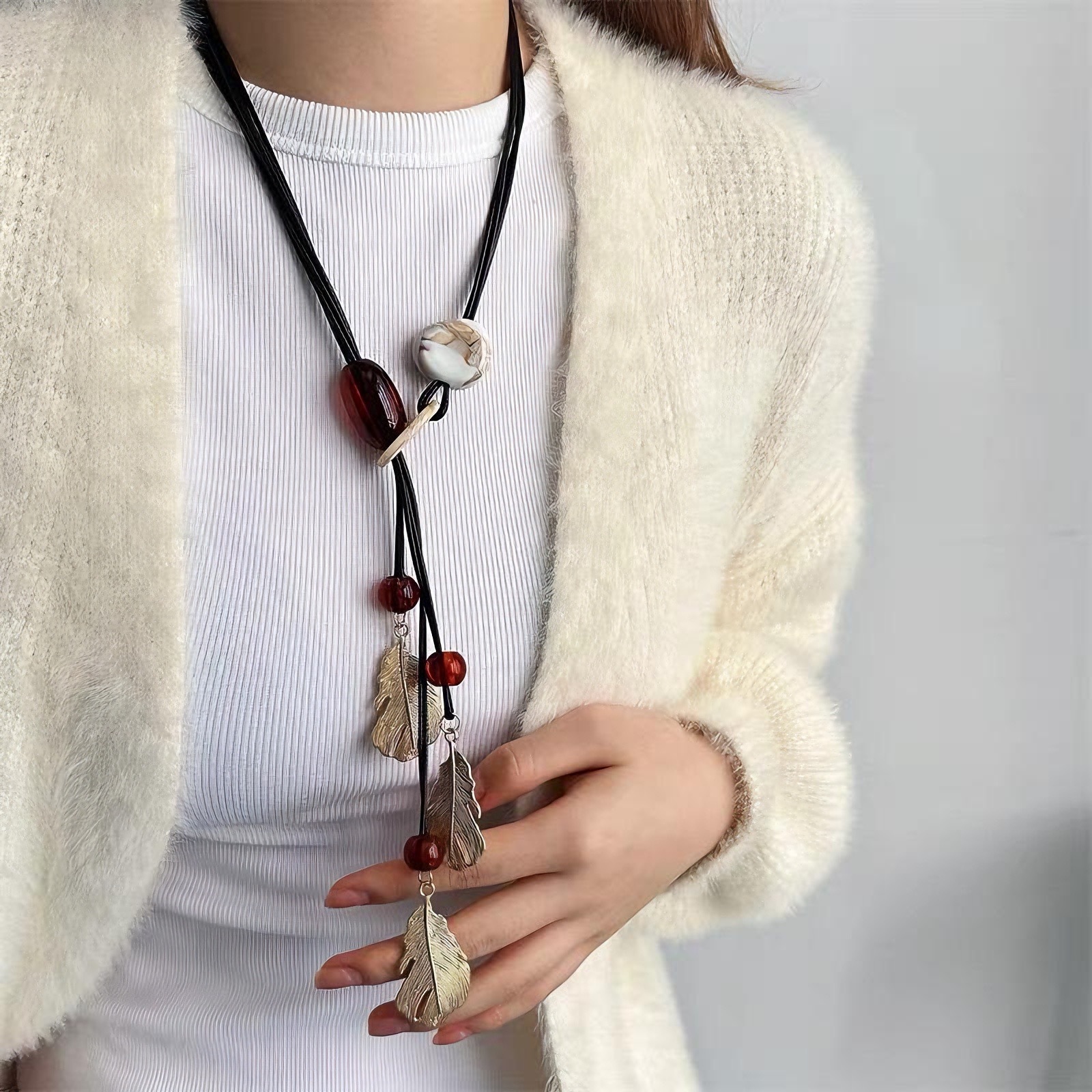 レトロボヘミアンメタルブレード多層編組ロープペンダントネックレス女性ニッチビーチ休暇多用途アクセサリー