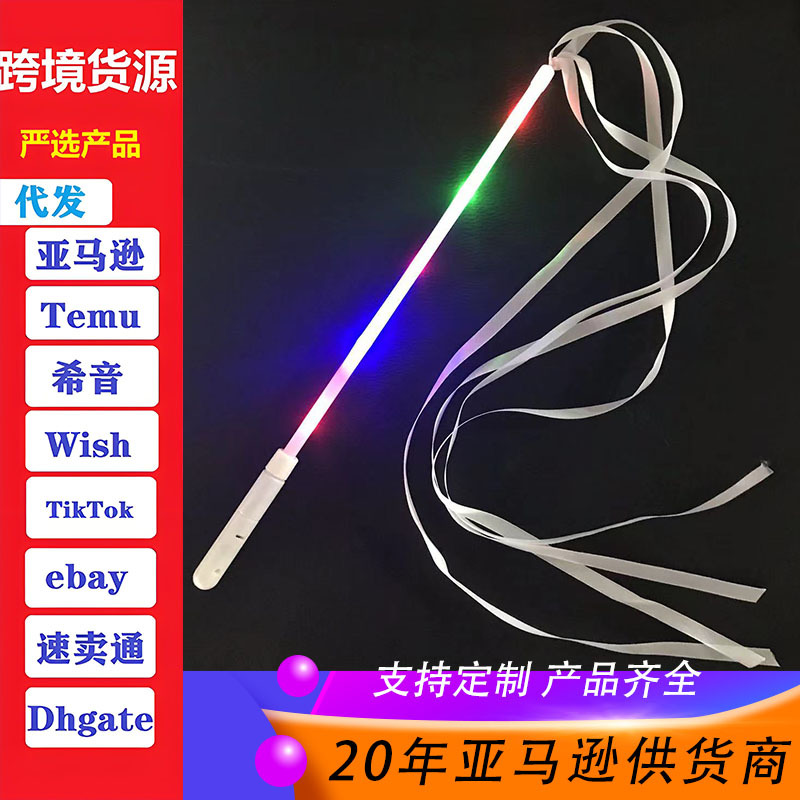 速売通クロスボーダーled結婚式発光リボン棒パーティー道具蛍光棒フラッシュリボン発光棒