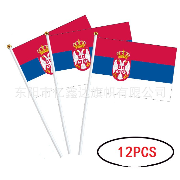 セルビア国旗手振り旗は旗ざお8号旗14*21cmポリエステル両面透形模様を含む