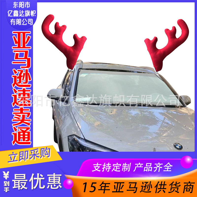 クロスボーダーのクリスマスの車は鹿の角を飾って、大きい赤いクリスマスの鹿の角の短いぬいぐるみの装飾品