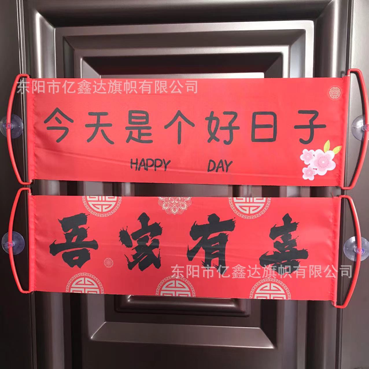 手引き旗は旗を引いて手を引いて横断幕のカラーの小さい旗を持って対聯して製作します。