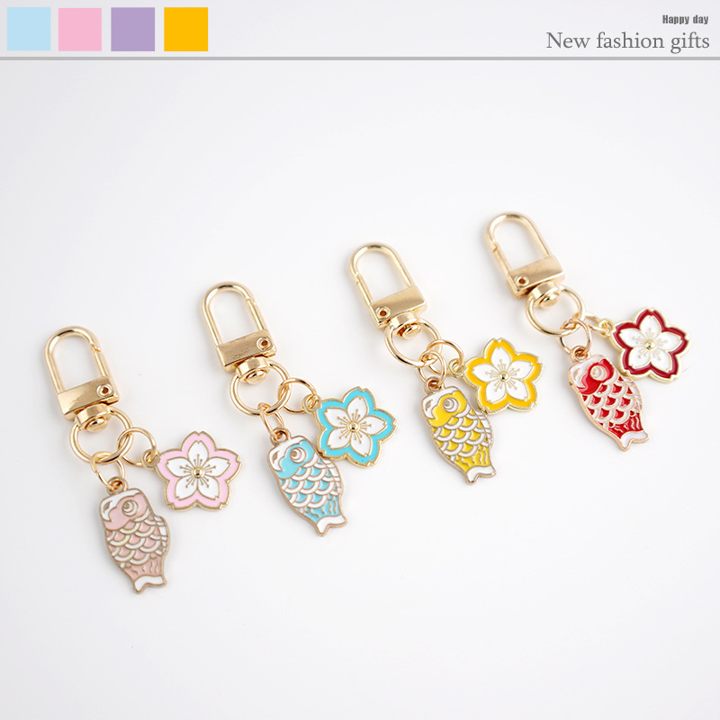 かわいい桜錦鯉キーホルダーペンダントDIYプレゼントuディスクペンダント女性プレゼント自動車アクセサリー携帯電話
