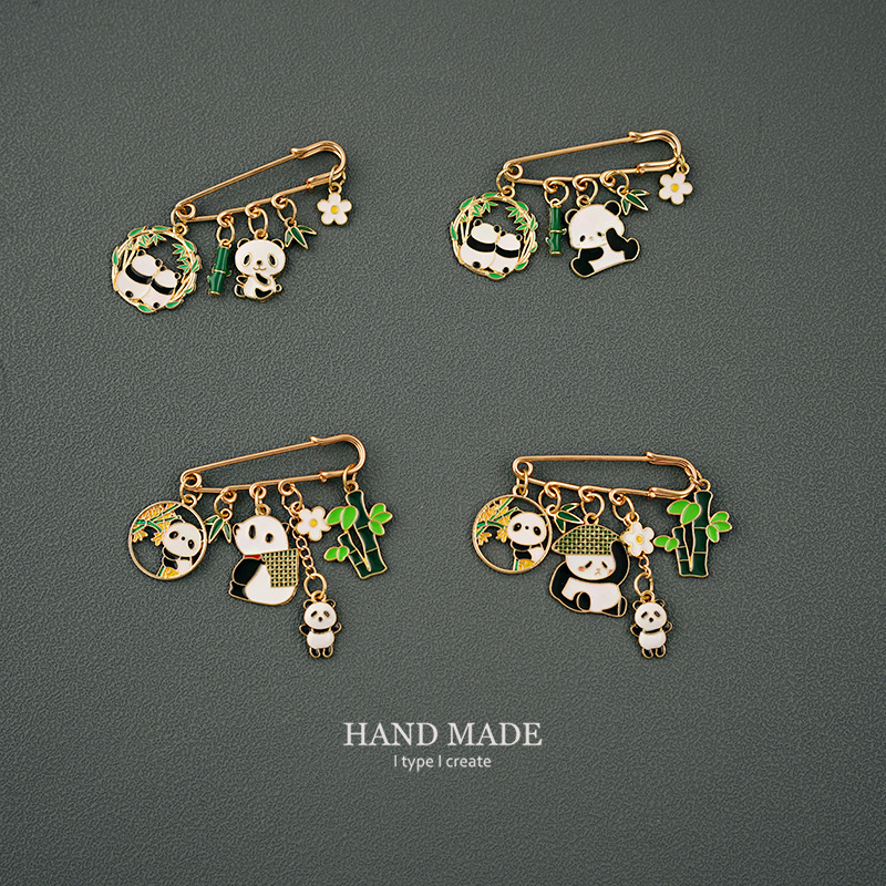 中国風パンダブローチ国潮かわいい竹ピン金属バッジ個性的なかばんガーディアン装飾品