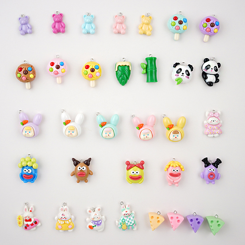 樹脂の羊の角の釘のかわいいケーキの漫画のペンダントのウサギのパンダのロリポップのキーホルダーのイヤリングのdiyの部品