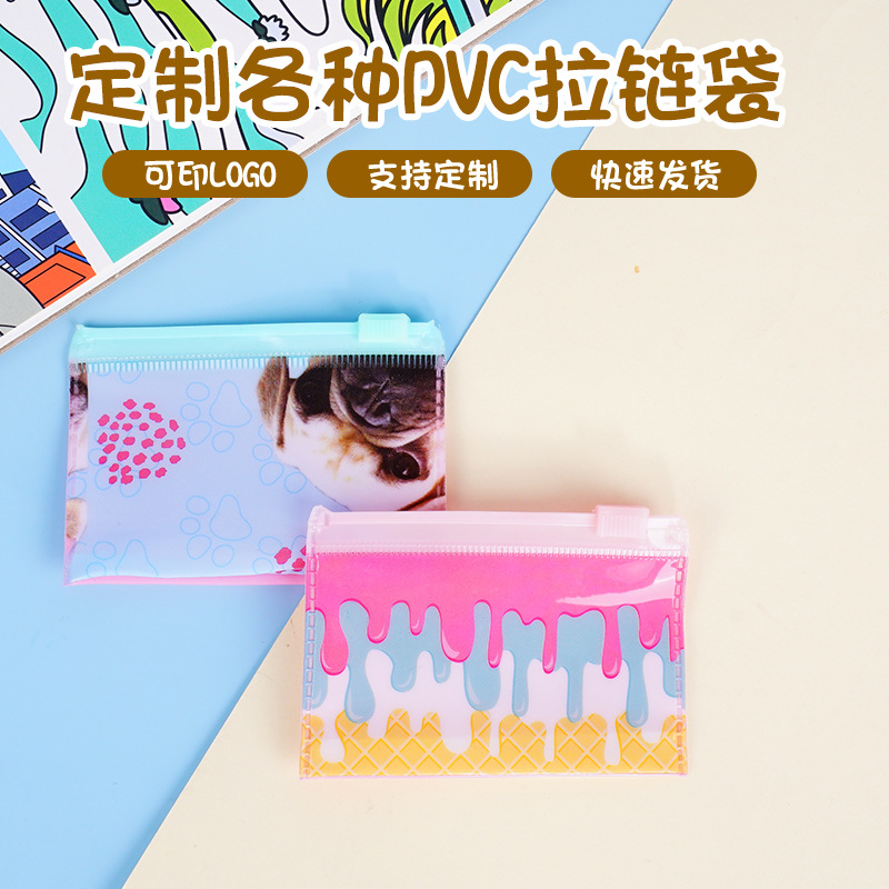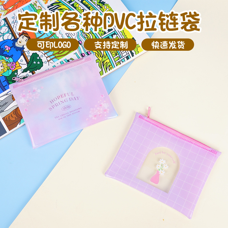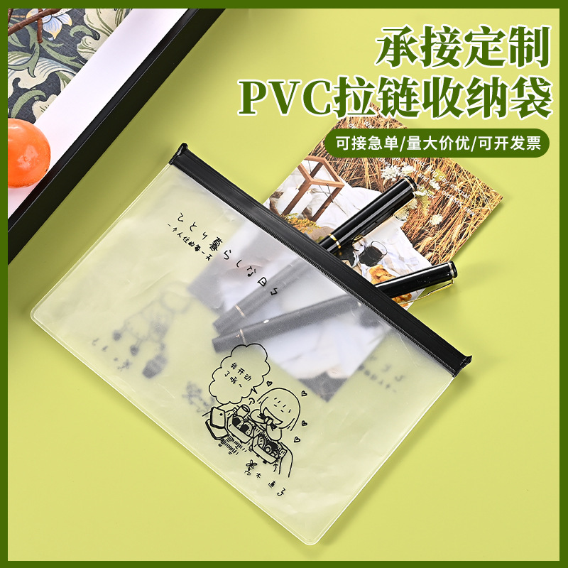 プラスチックフロストPVCジッパー袋印刷ロゴ透明収納袋漫画文房具袋防水ペン袋カスタム
