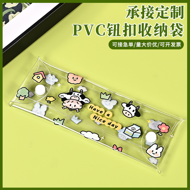 Pvcボタン収納バッグシンプル漫画文房具収納袋高級感ins風携帯透明バッグカスタム