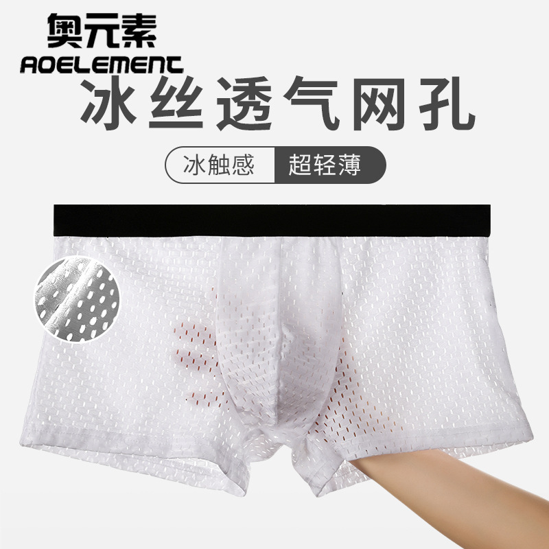男性下着男氷糸網穴通気四角ズボン男子透明セクシー平角ショートパンツ夏薄手
