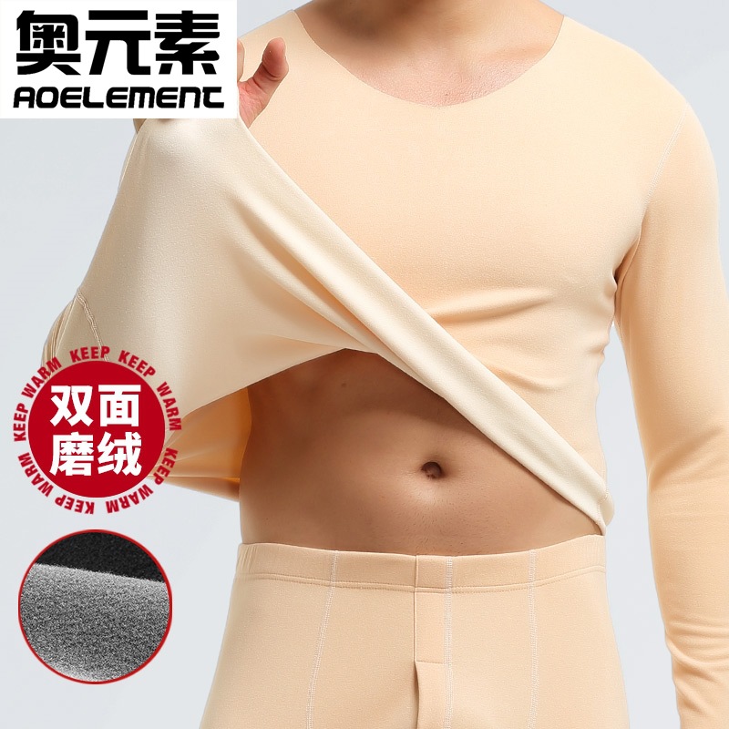 男性の秋の服の秋のズボンのスーツのベルベットの厚い底のシャツの修身の男子学生の無痕の防寒の保温の下着の秋の冬