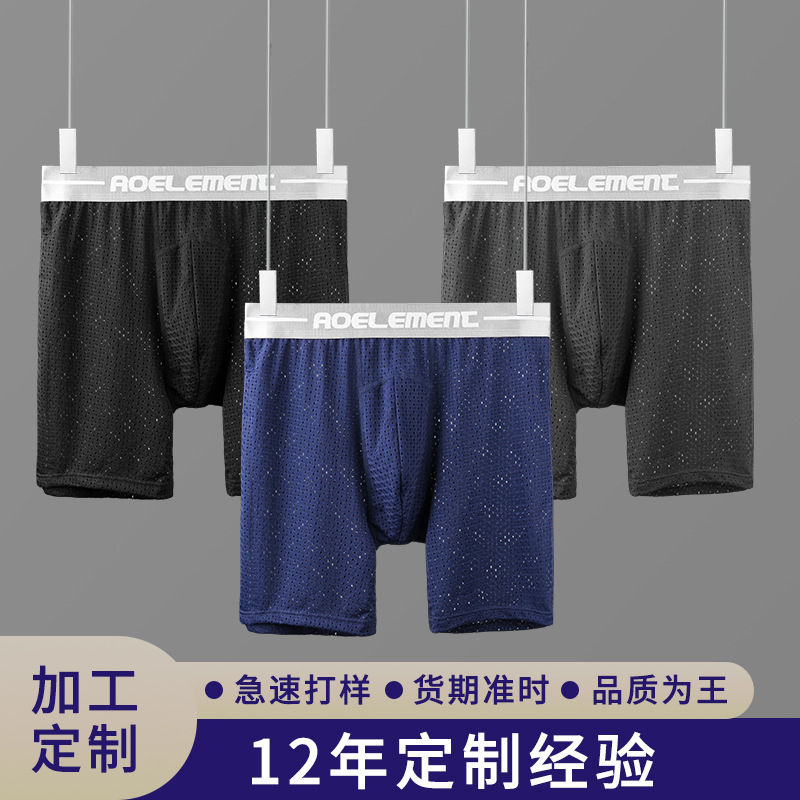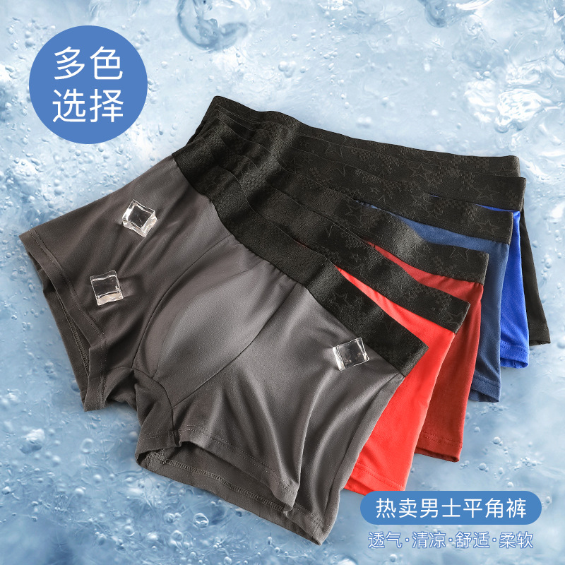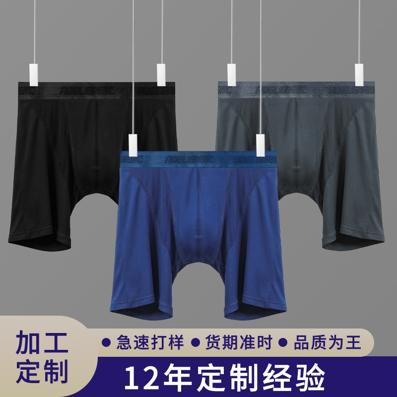 オーダーメイドメンズ氷糸通気下着二重内段多色快適半ズボン純色中腰通標平角ズボン頭