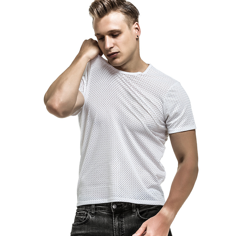 氷糸メッシュtシャツ男性メッシュ通気性メッシュ糸抜き運動フィットネス夏速乾ゆるいvネック潮メッシュ半袖
