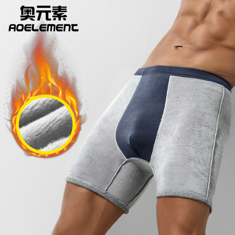 男性保温下着男性とベルベットが厚く、足が伸びない四角いズボン秋の冬の中高年平角パンツの頭を厚くしている