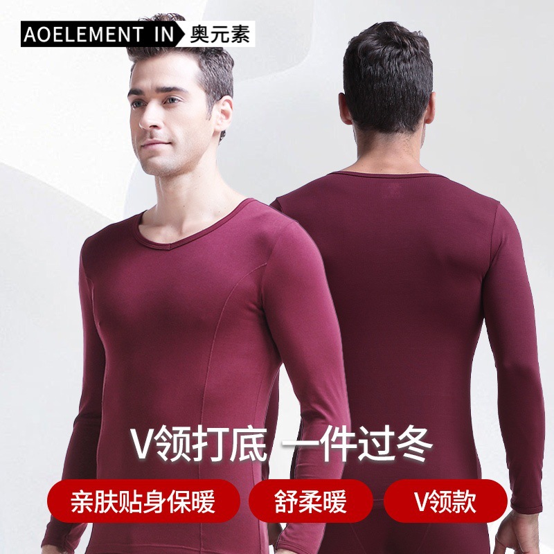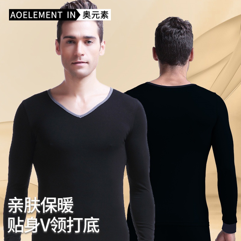 秋冬vネック男性保温上着スリム薄手ワンピース下着低襟単層通気性秋衣底上着