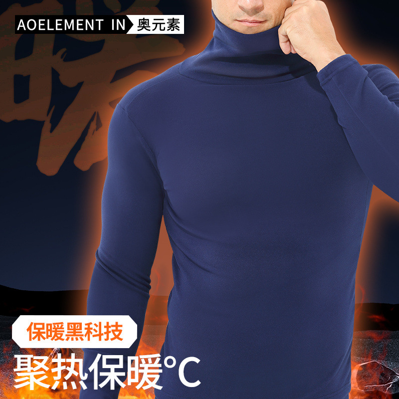 ベルベットの厚い秋の服の男性の中の高襟の保温防寒下着のシャツの中に長袖の一枚の上着を着ている