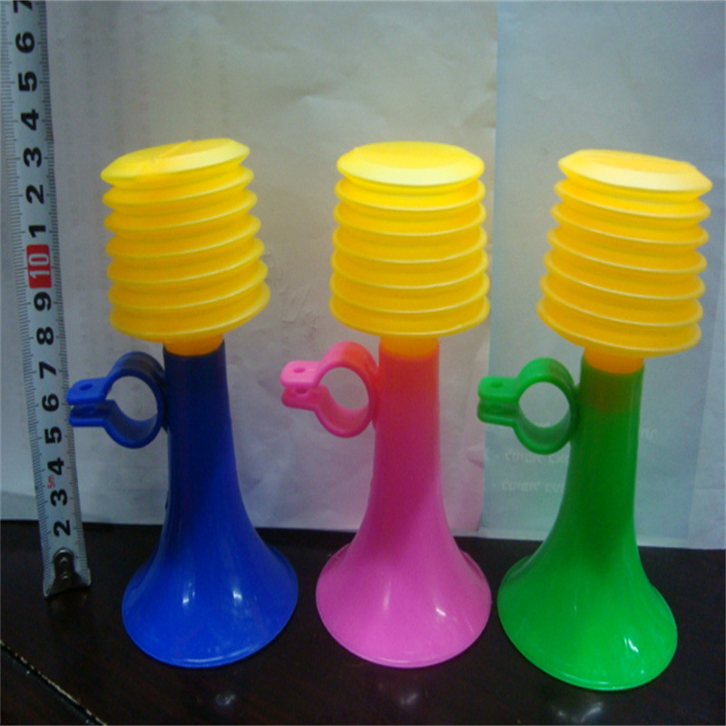 プラスチックのラッパのおもちゃのラッパはマイクの牛の角の笛を叫びます。