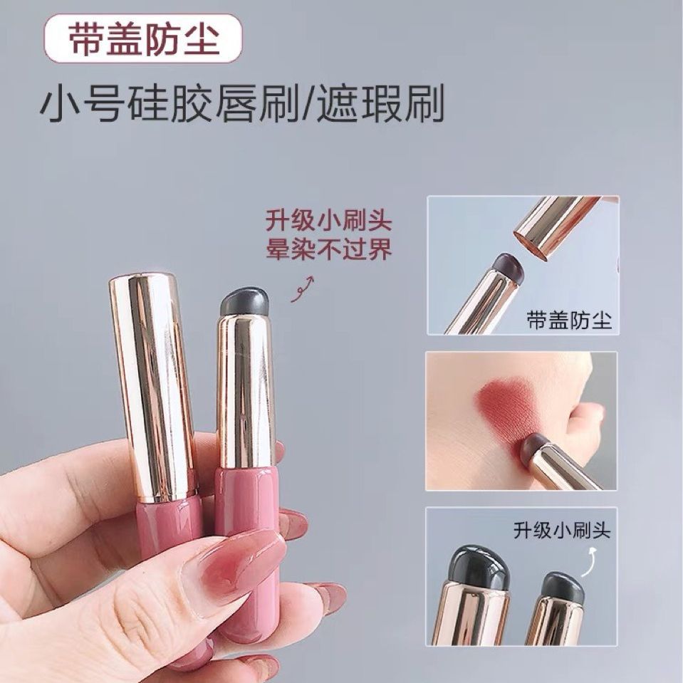 蓋付きの小さいサイズのシリカゲルリップブラシqソフト斜めの丸い口紅は携帯用ショートハンドル多機能カバー化粧ブラシです。
