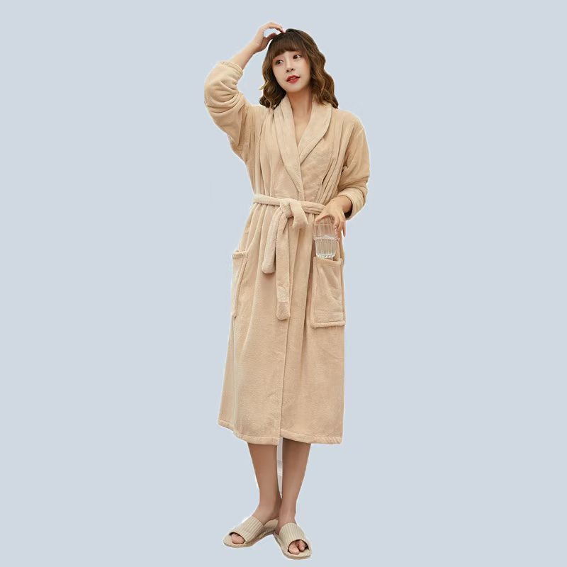 サンゴの毛の新型のバスローブの女性の長いタイプの寝衣のカップルの大人の厚い吸水の家の服のパジャマのメーカーの卸売り