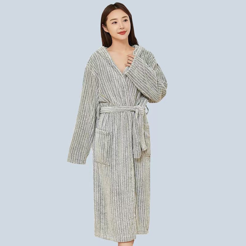 新しいバスローブ柔らかい吸水ジャカード浴衣男女の長いファッションパジャマの長いサイズの家庭服パジャマ