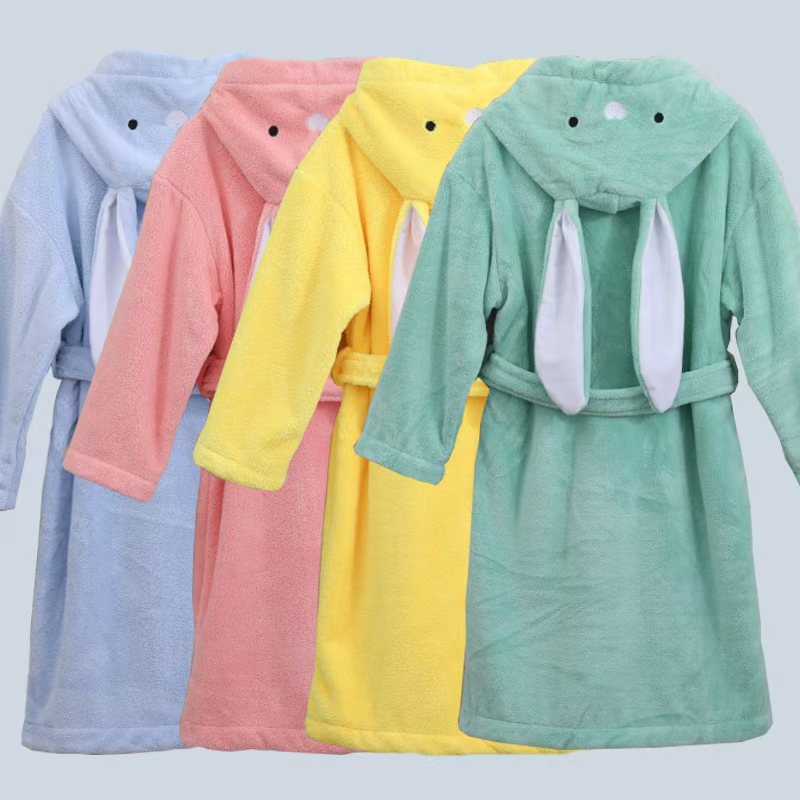 子供のマントのバスタオルのウサギのバスローブの珊瑚の絨毯の厚い漫画の浴衣は帽子をかぶって家庭服のメーカーの卸売りを着ることができます。