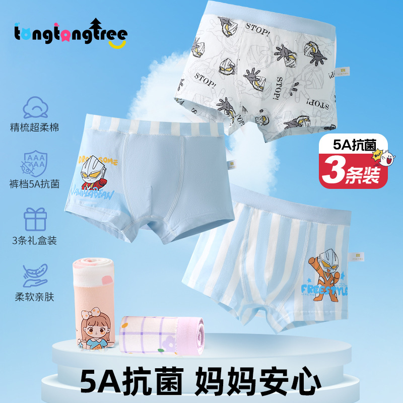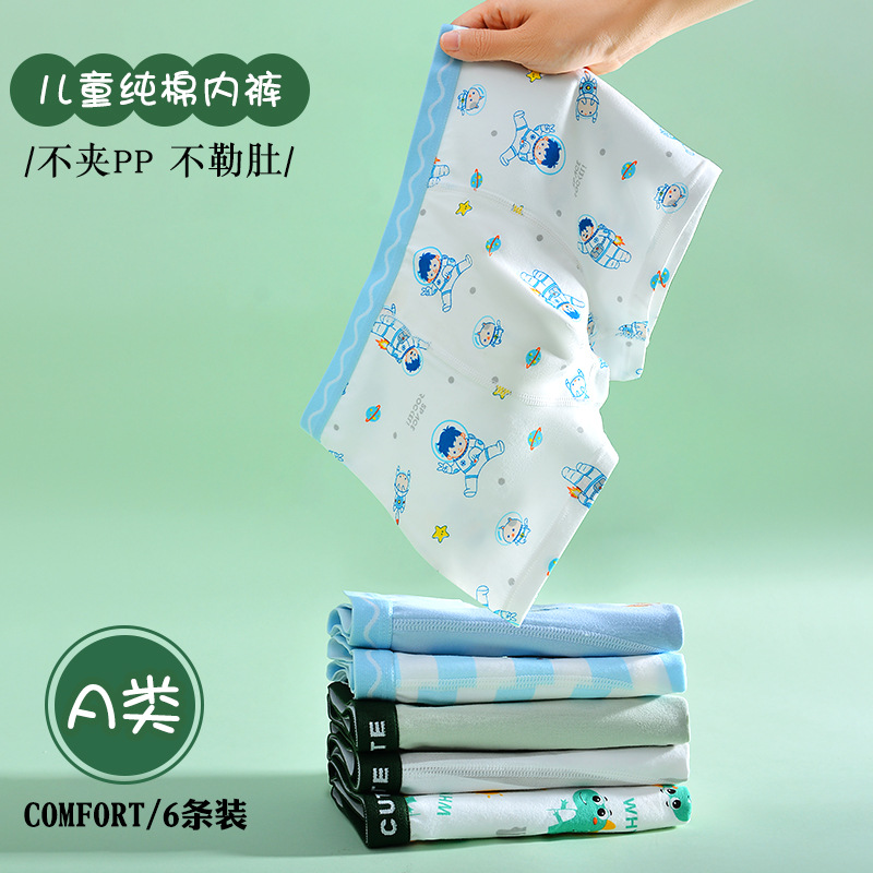 童童树新作A級子供用下着6枚組純綿漫画プリント箱入り男の子女の子ボクサーパンツ卸売
