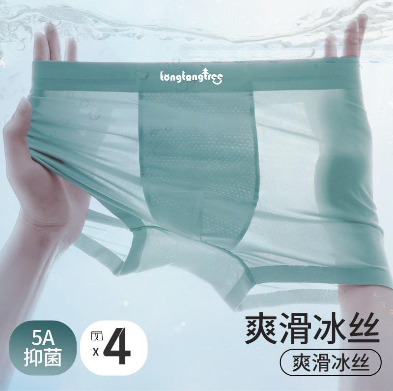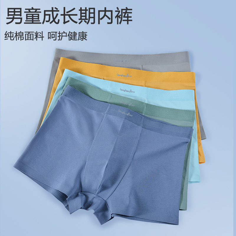 童童树5A抗菌ボックス入りジュニアパンツ、シームレスアイスシルク高弾性通気性青少年男の子用ボクサーパンツ