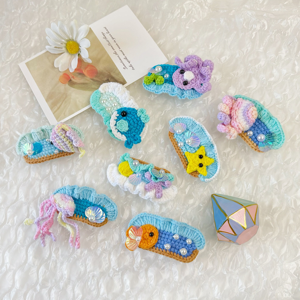 夢幻海洋シリーズの手は毛糸のかぎ針の高級な髪飾りをします。