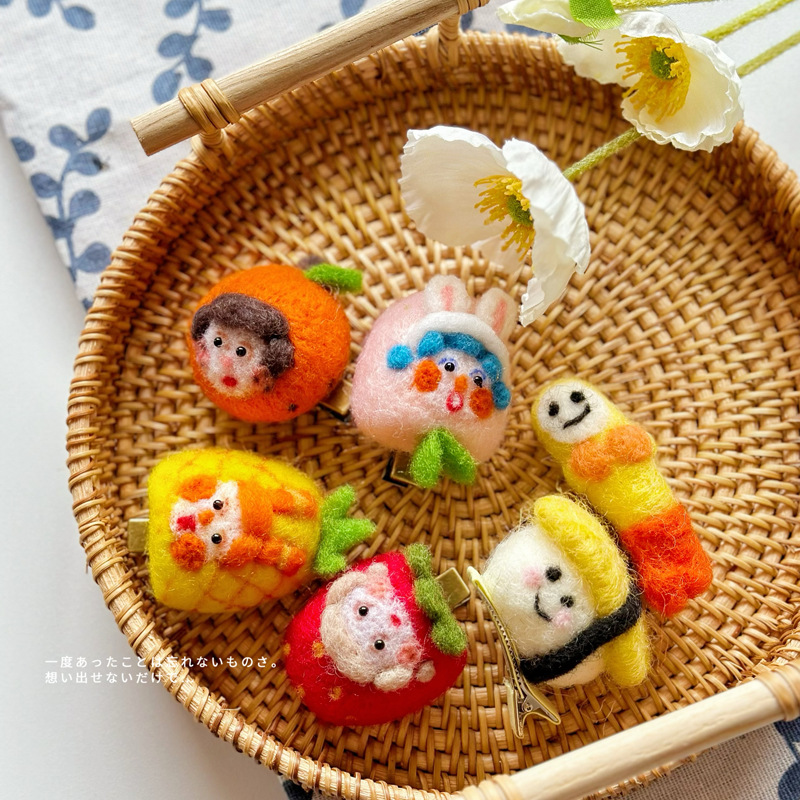 和風洋菓子の精巧なウールフェルトの漫画のヘアピンの甘い果物の子供のヘアピンのアイデアの寿司の髪飾りのサイドクリップ