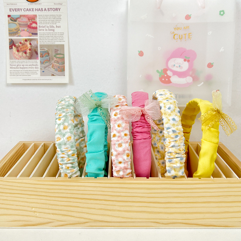 2つの服の韓国版の花のしわの子供のカチューシャのマカロンの色のレースの蝶結びの女の子のカチューシャのバックル