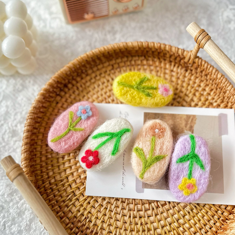 小さい清新な楕円形の花のウールのフェルトの髪飾りは卸売りします。