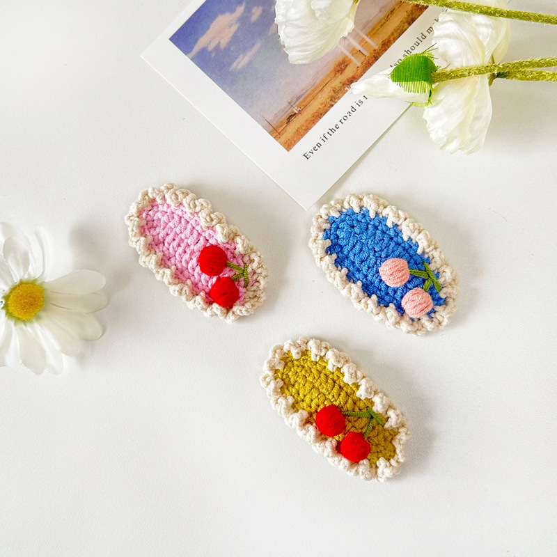 韓国の楕円のレースのさくらんぼのヘアピンの女の子の髪飾りの手作りの毛糸は秋冬のアクセサリーの卸売りのサイドクリップを編みます。