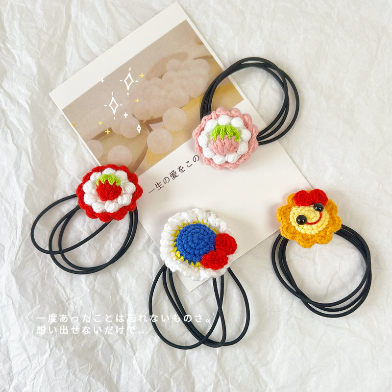 2022秋冬の甘美な小香風の毛糸のメリヤスの少女は馬尾の髪のひもの小学生の髪のひもを刺します。