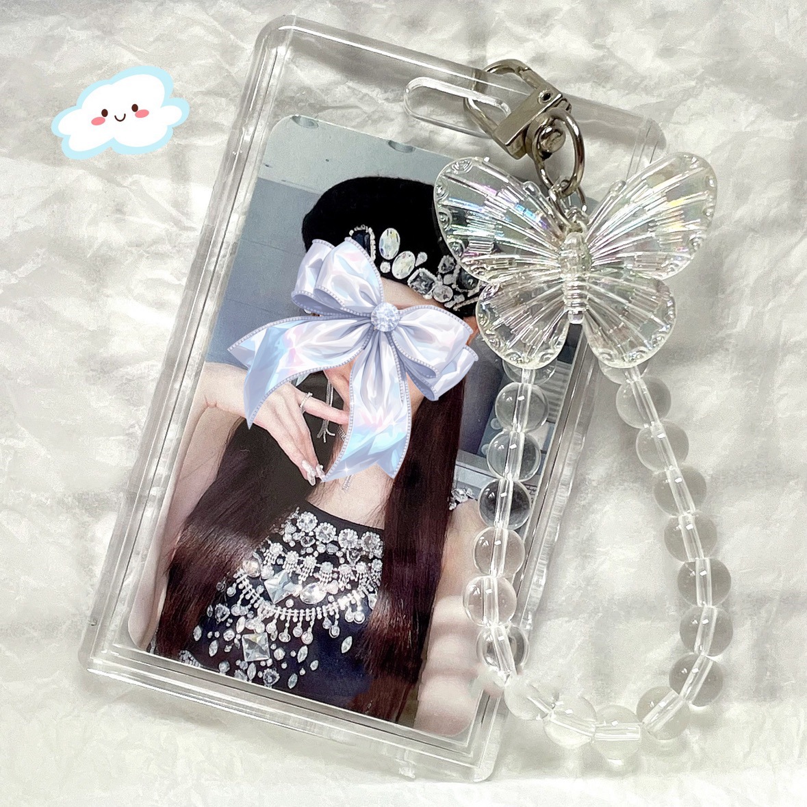 透明立体蝶カードホルダーキーホルダークリスタル蝶小さなカード収納学生バスカード ID カード食事カードホルダー