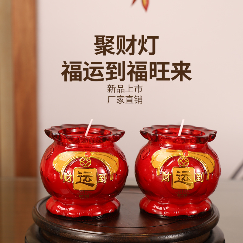 ガラスカップ型宝庫赤いキャンドル無煙家庭用屋内常夜灯仏陀用ガラス防風