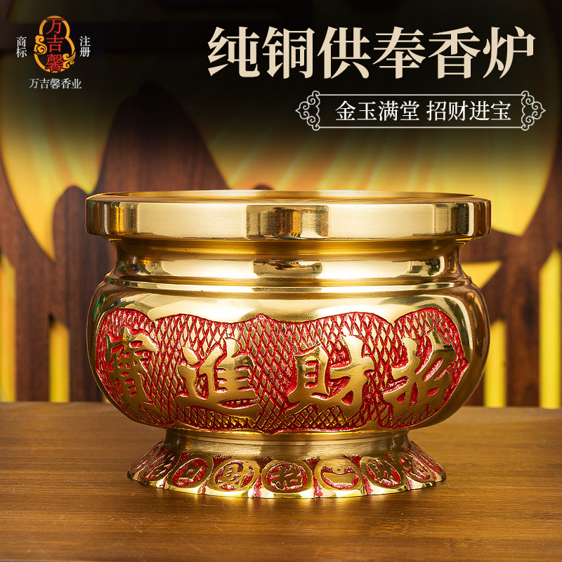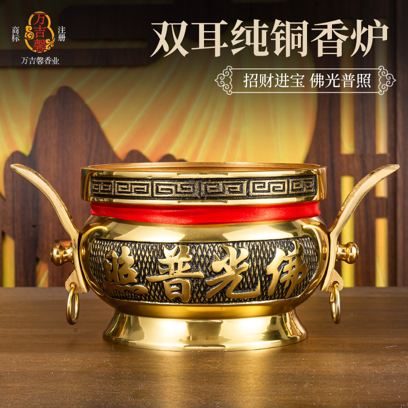 双耳純銅香炉家庭用供仏招財炉小檀香炉室内香薫炉挿し香供盤香炉